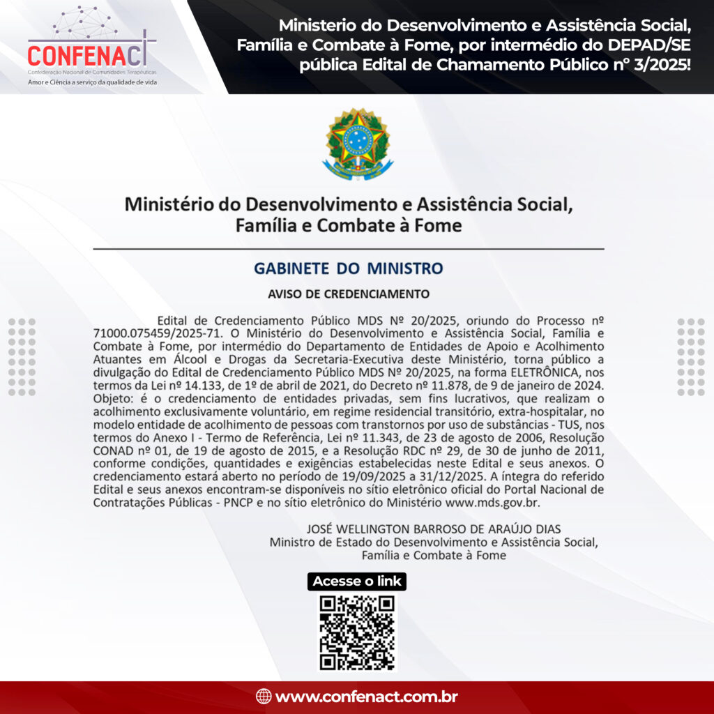 #CONFENACT #ComunidadesTerapêuticas #MDS #Edital2025 #Acolhimento #PolíticasSobreDrogas