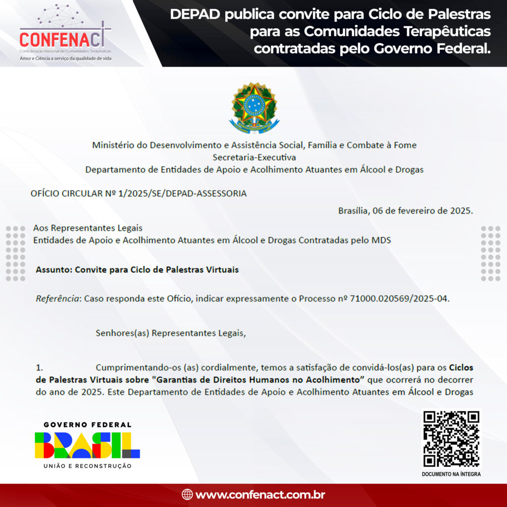 #ComunidadesTerapêuticas #Acolhimento #DireitosHumanos #GovernoFederal #Confenact