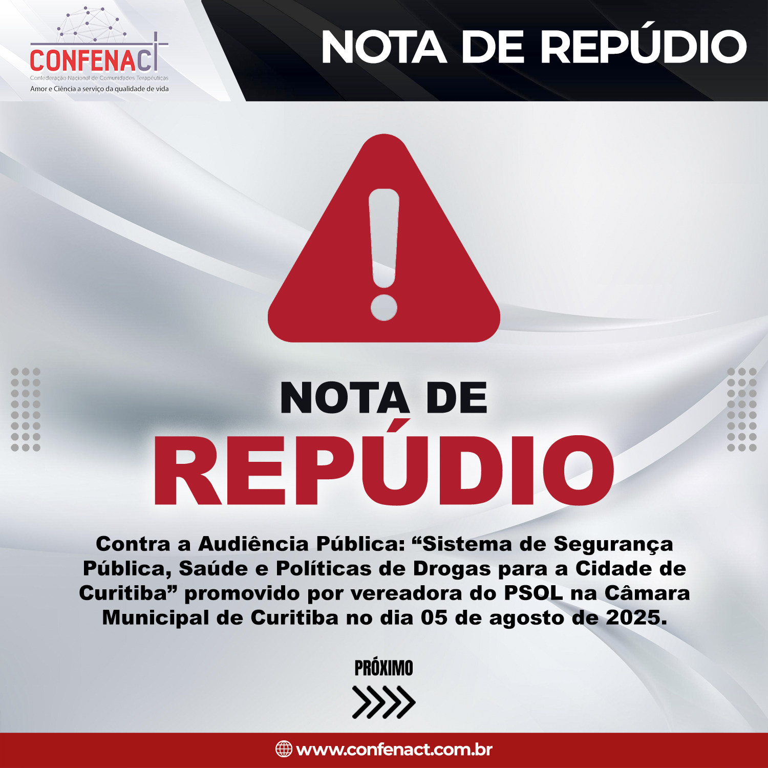 A CONFENACT manifesta seu absoluto repúdio à Audiência Pública “Sistema de Segurança Pública, Saúde e Políticas de Drogas para a Cidade de Curitiba”, realizada em 05/08/2025 na Câmara Municipal de Curitiba.