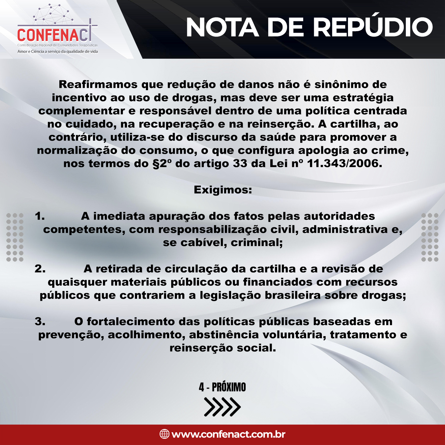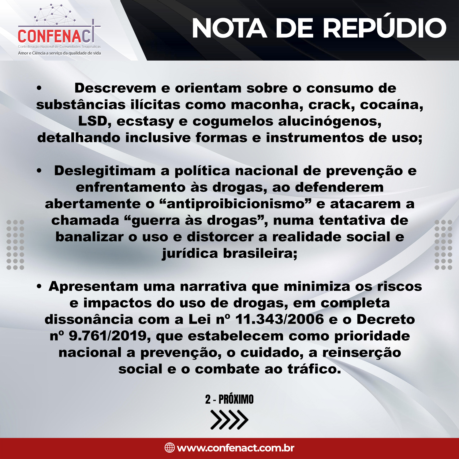 #CONFENACT #NotaDeRepúdio #PolíticasSobreDrogas #SegurançaPública #ComunidadesTerapêuticas #DigaNãoÀLegalização #RespeitoÀVida #ResponsabilidadeSocial